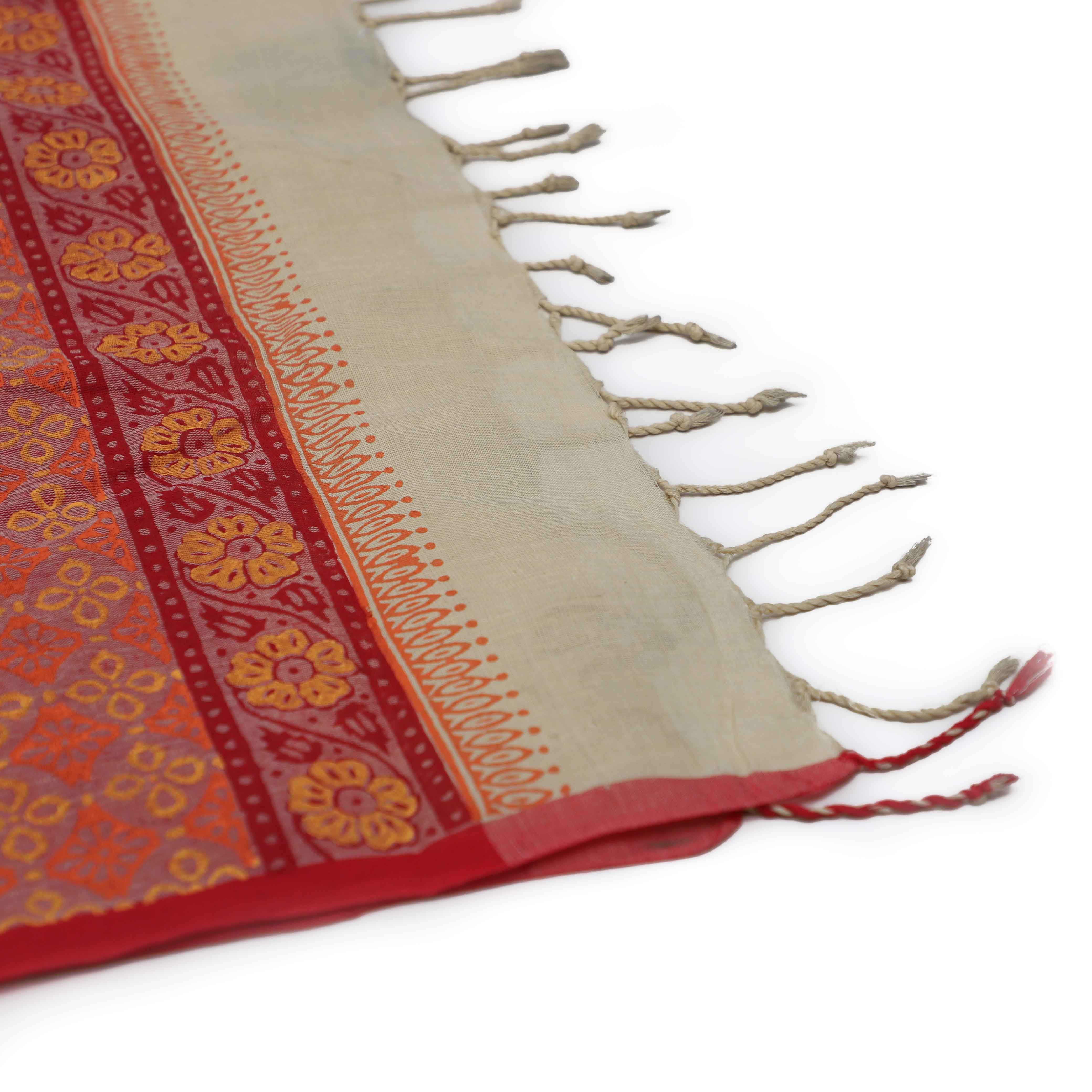 Soft cotton printed sari, handcrafted with care, celebrating Bengali New Year spirit. Fair trade creation by skilled artisans, offering comfort, elegance, and timeless everyday beauty grace.