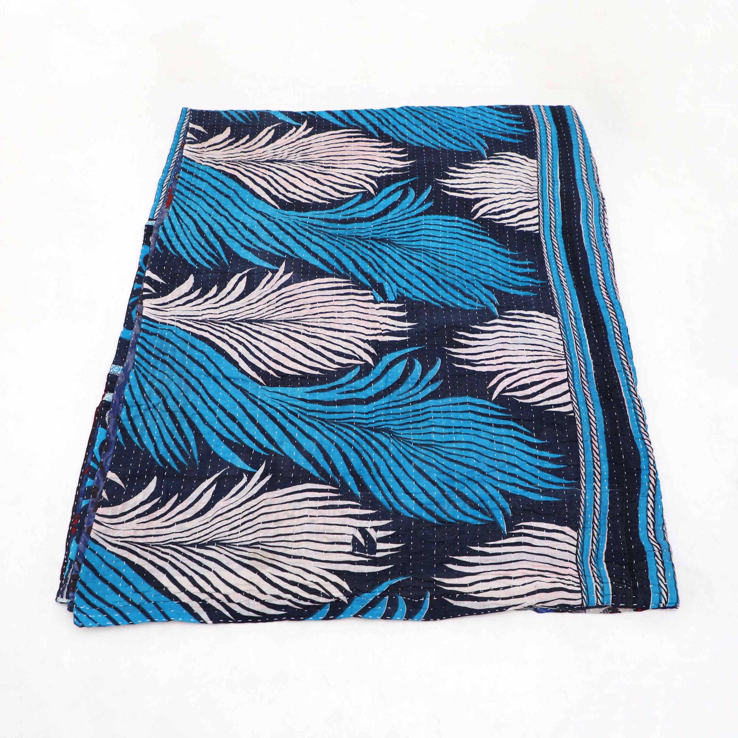 Handmade Recycled Sari Kantha blanket offers warmth, color, and tradition, ethically crafted through fair trade by Prokritee artisans from layered recycled saris with timeless sustainable beauty.Recy